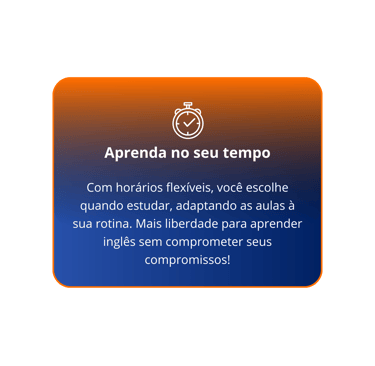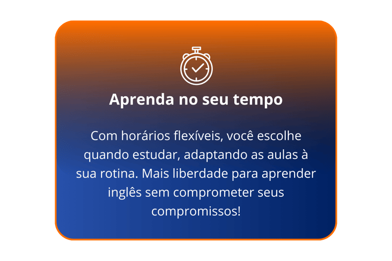 Na Ambar Idiomas, você tem total liberdade para ajustar seus horários de estudo. Nossa flexibilidade permite que você aprenda inglês no seu ritmo, sem abrir mão da sua rotina. Afinal, seu aprendizado deve se encaixar na sua vida, e não o contrário!